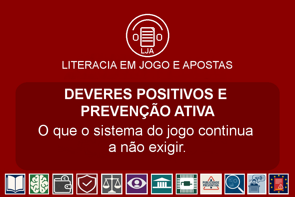 A fragilidade estrutural da prevenção no setor do jogo não resulta apenas de falhas conceptuais ou de ambiguidades discursivas. Resulta, sobretudo, da ausência de deveres positivos claros, vinculativos e verificáveis impostos aos operadores e assumidos pela regulação como núcleo central da proteção do jogador. Enquanto a prevenção for entendida como recomendação, expectativa ou boa prática, e não como obrigação, continuará a existir um vazio operacional entre o risco conhecido e a ação efetiva.